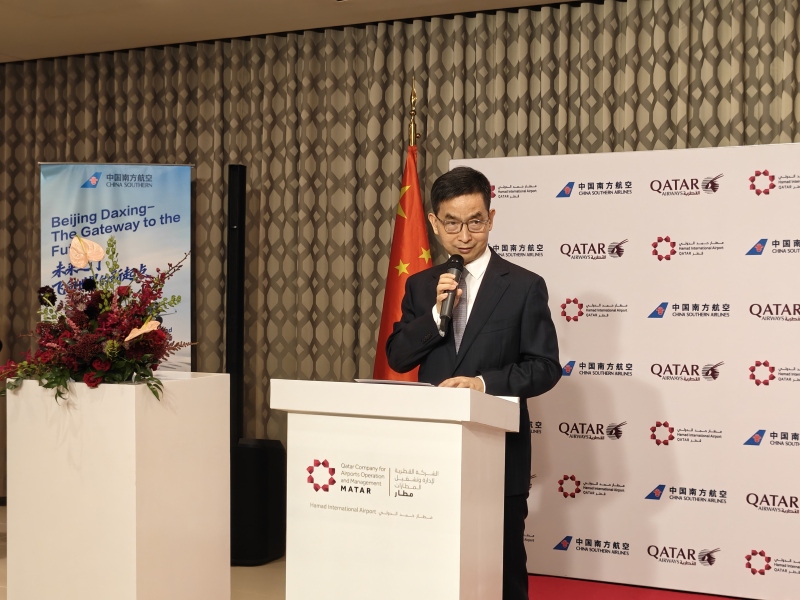 2025年10月16日,中国南方航空公司在卡塔尔多哈哈马德机场举行北京—多哈航线开航仪式,驻卡塔尔大使曹小林出席活动并致辞。哈马德机场首席运营官哈特尔等出席。
